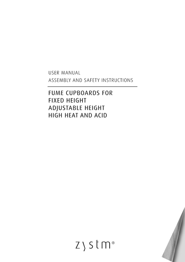 USER MANUALASSEMBLY AND SAFETY INSTRUCTIONSFUME CUPBOARDS FORFIXED HEIGHTADJUSTABLE HEIGHTHIGH HEAT AND ACID